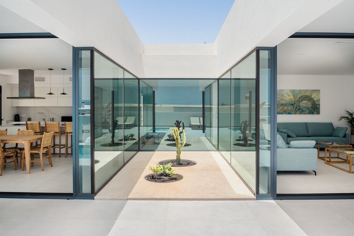 (jacuzzi GRATIS) CONSEJO: ENTRA EN LA WEB PRIVADA DE LA VILLA y MIRA SUS EXTRAS OPCIONALES SI DESEAS TUS VACACIONES ELEVARLAS A UN NIVEL SUPERIOR!. ES FACIL! TIENE EL MISMO NOMBRE QUE EN BNB! Villa independiente diseñada y hecha con sus manos por el artista local de vidrio fundido " SALVADOR GARCIA" Pensada en cada detalle para hacer soñar a la PAREJA ! Salvador ha creado obras únicas y exclusivas que sin duda alguna ha reflejando el carácter de lanzarote con paz , armonía e ilusión!