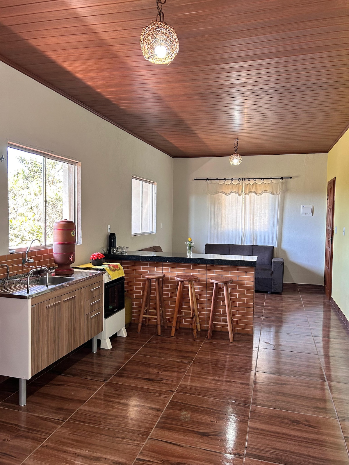 Գտնվելով հանգիստ փողոցում և մայթում ՝ կենտրոնից 2 րոպե հեռավորության վրա, շատրվանից 5 - ը, Լապա դա Ալզիրայից 10 - ը և ջրվեժից 15 - ը ՝ ջրվեժից, որն ունի պարզ և գյուղական նախշ, որը բնորոշ է տարածաշրջանին ։ Այն ունի 1 երկտեղանի ննջասենյակ ՝ հեռուստացույցով, մինի խոհանոց, հյուրասենյակ ՝ պարտեզի տեսարանով, սառնարանով, երկու սեղան և թախտ, որը կարող է տեղավորել ևս 1 անձի ։ Տարածքն ունի կայանատեղի և մեծ առանձին բակ ։ Որոշակի հանգստյան և տոն օրերին (ըստ պահանջի) կարող է փոխվել գիշերների նվազագույն քանակը և արժեքը ։