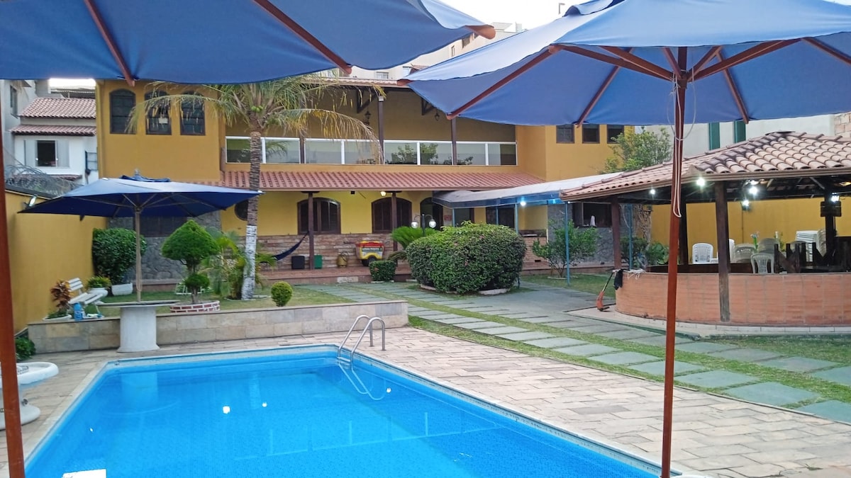 Agradecemos o interesse em estar nesse lugar maravilhoso, certeza que você, sua família e seu amigos vão adorar e curtir muito ! - Pisicina - Churrasqueira - 6 banheiros - 4 suítes - Utensílios de cozinha - Cook top 5 bocas - Cervejeira - Geladeira - Mesa de madeira para 20 pessoas - Mesa de piscina com ombrelone para 12 Pessoas - ⁠6 Espreguiçadeiras para piscina