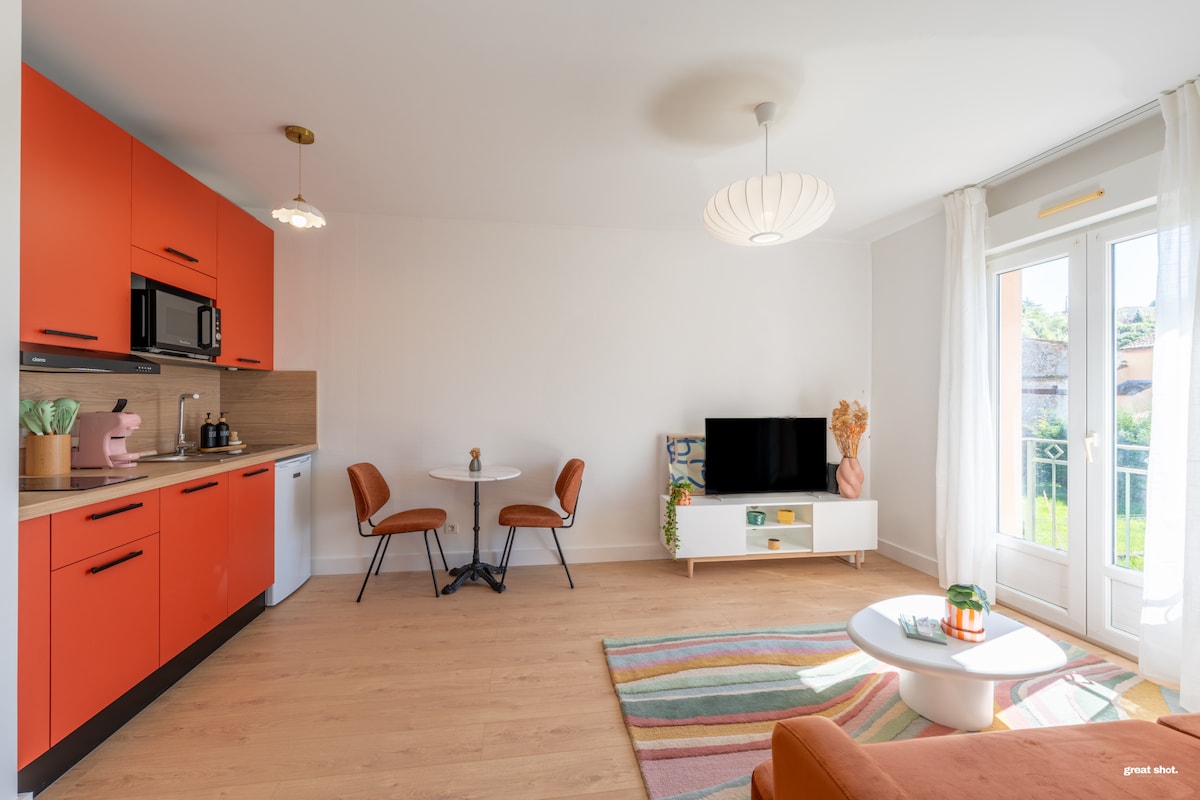 Լուսավոր և գեղեցիկ ձևավորված բնակարան ՝ ժամանակակից, բայց ջերմ մթնոլորտով ։ Իդեալական է Կորբարիեում ՝ Մոնտաուբանից ընդամենը մի քանի րոպե հեռավորության վրա, այս նոր վերանորոգված 1 ննջասենյակով բնակարանը կատարյալ է հանգստի և հարմարավետ հանգստի համար ։ Ամեն ինչ մանրակրկիտ նախագծվել է, որպեսզի ձեզ զգաք ինչպես տանը ՝ լինի դա բիզնեսի, ռոմանտիկ հանգստի, թե պարզապես տարածաշրջանն ուսումնասիրելու համար ։