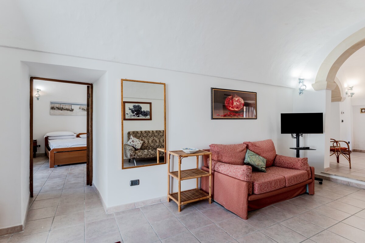 The house "Perla dell 'Acquaviva" , in the middle of the Otranto-Leuca natural park , offers an enviable private access to the sea and the privilege of entering the waters of the cove through a comfortable rocky staircase different from the other bathers. The property consists of bathroom, bedroom, kitchen-living room, porch overlooking the sea. You will be welcomed by large outdoor spaces with a relaxation area among tall trees and the relaxing roar of the waves.