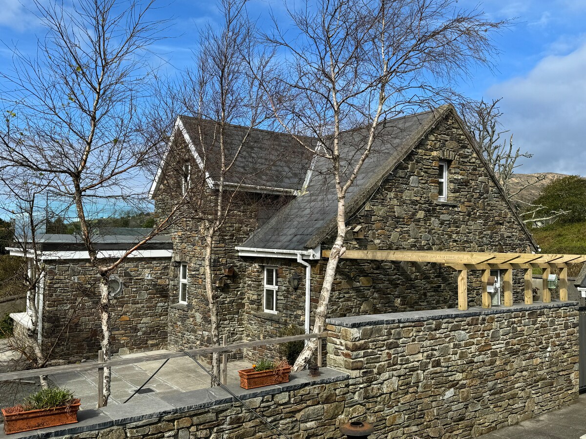 Գտնվելով Kenmare Bay հյուրանոցի տարածքում ՝ դուք կգտնեք մեր 4*, ինքնասպասարկվող հանգստյան տունը: Քենմարե Թաունի խանութներից և համադամասերական հրճվանքներից ընդամենը մի քանի րոպե հեռավորության վրա գտնվող հյուրանոցային տարածքները հիանալի վայր են լողավազանով, մարզասրահով, ջակուզիով և սաունայով հագեցած հանգստանալու և առողջապահական ակումբը: Մեր հանգստյան տունը թաքնված է Վայրի Ատլանտյան ուղու ամենագեղատեսիլ անկյուններից մեկում և իդեալական մնալու տեղ է, մինչ դուք բացահայտում եք Քերիի մատանին ։ Խնդրում ենք ազատորեն ուղարկել ձեր հարցումը: