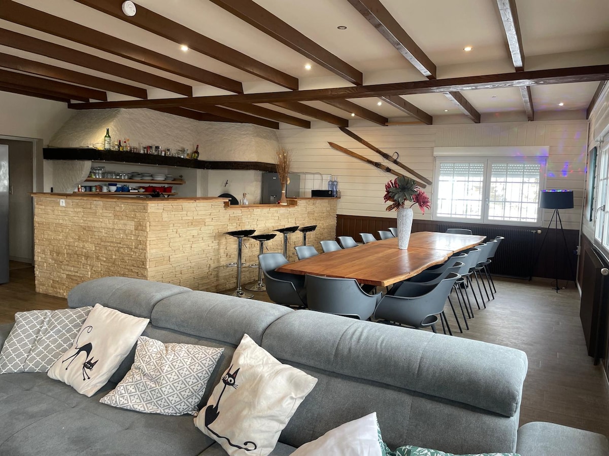 Մոռացեք ձեր հոգսերը այս ընդարձակ և խաղաղ կացարանում. հին ագարակ, որը ճաշակով վերանորոգված է Ballons des Vosges բնական պարկի սրտում: Չնախատեսված և հանգիստ ՝ դուք կունենաք անհրաժեշտ բոլոր հարմարությունները ՝ 85 մ2 մեծ լուսավոր բնակելի տարածք ՝ հյուրասենյակով, լողավազանի սեղանով, ճաշասենյակով, կահավորված խոհանոցով ։ Յուրաքանչյուր ննջասենյակ ունի իր լոգասենյակը ՝ առանձին զուգարանակոնքով ։ Հատուկ կարիքներով անձանց համար հարմարություններ քոթեջից, ժամանակակից կենցաղային տեխնիկայով մարզասրահ և ինֆրակարմիր սաունա ։