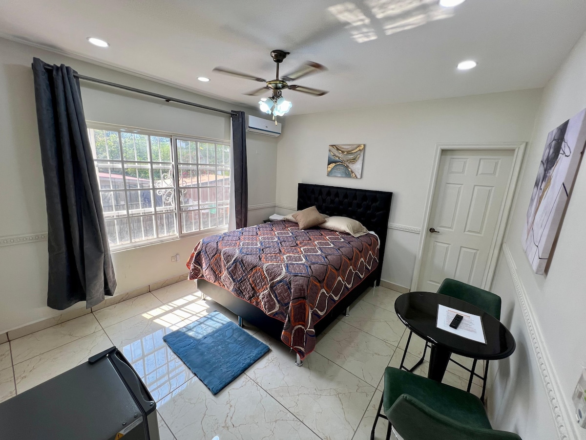 El estudio está muy bien equipado con todo lo necesario ideal para 2 personas que buscan un lugar tranquilo en buena ubicación Cuenta con una pequeña cocina, cama Queen size, área de trabajo, TV, baño privado. El estudio está en la segunda planta. 🎯▶️En Este Momento la Piscina se encuentra en Mantenimiento, por lo cual no está disponible 🚫 No es permitido las visitas. 👮Solicitamos imagen del ID 🪪 de acompañante. ⚡NO cuenta con generador eléctrico. Tomar en cuenta todos los reglamento.