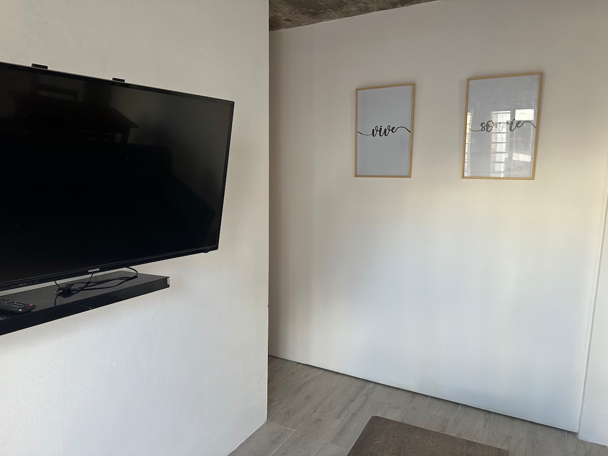 Bienvenido! Apartamento al frente de 30m2 a 300 metros del mar y 200m del centro de la ciudad y a 100 del transporte público Comodidades -Habitacion , baño, cocina, cochera y jardín - Cama Queen size extra firme -TV Led 24" con Chromecast -Wifi -Frigobar, Microondas , Cocinilla a gas, sombrillas reposeras - Ropa de cama y baño NO SE PERMITEN MASCOTAS, con excepcion de las mascotas de servicio. - La cocina es techada pero es exterior.