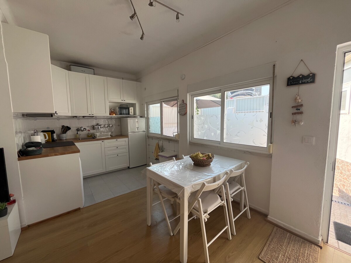 Փոքր տիպիկ տուն Տախո գետի մյուս կողմում, Լիսաբոնից մեքենայով 20 րոպե և Կոստա դա Կապարիկայի գեղեցիկ լողափերից (Պրայա դու Ռեյ, Ֆոնտե դա Թելյա...) 5 րոպե հեռավորության վրա։ Բոլոր հարմարություններին (խանութներ, բանկեր, տրանսպորտ) կարելի է հասնել ոտքով՝ հաշված րոպեների ընթացքում։ Իդեալական է սերֆինգի և երկար լողափերի սիրահարների համար։ Տունն ունի 3 ննջասենյակ (2-ը՝ երկտեղանի մահճակալներով) և 1 ննջասենյակ ձեղնահարկում՝ 2 մեկտեղանի մահճակալներով