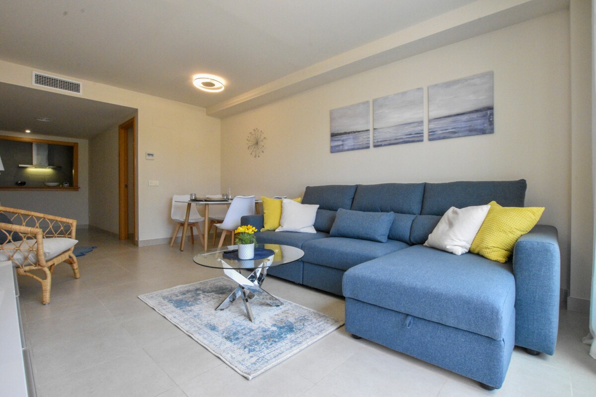 Ձեր ամբողջ ընտանիքը կհանգստանա այս հանգիստ տարածքում: Հարմար է գոլֆի սիրահարների համար (Aguilón Golf): Բնակարանը բաղկացած է հյուրասենյակից, որտեղ կա ճաշասենյակ, խոհանոց, ննջասենյակ ՝ 2 առանձին մահճակալներով(փոքրանալու հնարավորություն), ընդարձակ բազմոց, մեծ լոգասենյակ, երկրորդ առանձին զուգարան և ընդարձակ տեռաս ՝ կանաչապատ տարածքով: Համալիրն ունի 3 լողավազան, թենիսի դաշտ և մանկական խաղահրապարակ: