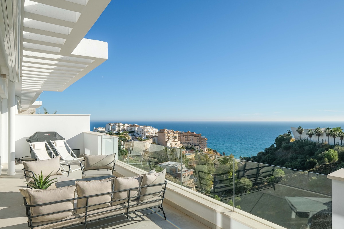 A beautiful luxury penthouse located in the stunning village of Mijas Pueblo. * The Best Ocean & Mountain views that the Costa del Sol has to offer * Relax on your own private roof terrace including a hot tub, day bed & sunloungers. Both the roof top terrace and the dining terrace is a great space for entertaining, relaxing & enjoying the amazing sunset and views The penthouse has a luxury décor with open plan living, both bedrooms have sea views & comfortably sleeps 4 people