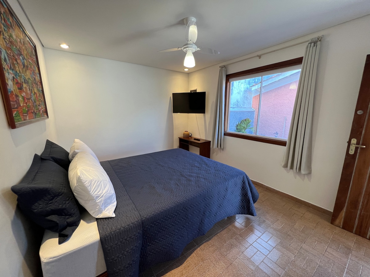 Chalé privativo completo a 150 metros da praia do Itaguassu e 500 metros da praia do Perequê com ar condicionado e smart TV. Oferecemos aos hóspedes roupa de cama toalhas e uma cozinha privada completa que podem usar a vontade. Próximo a padarias, mercado, restaurantes, bares, bancos a 3km da balsa e 3km da Vila (centro histórico).