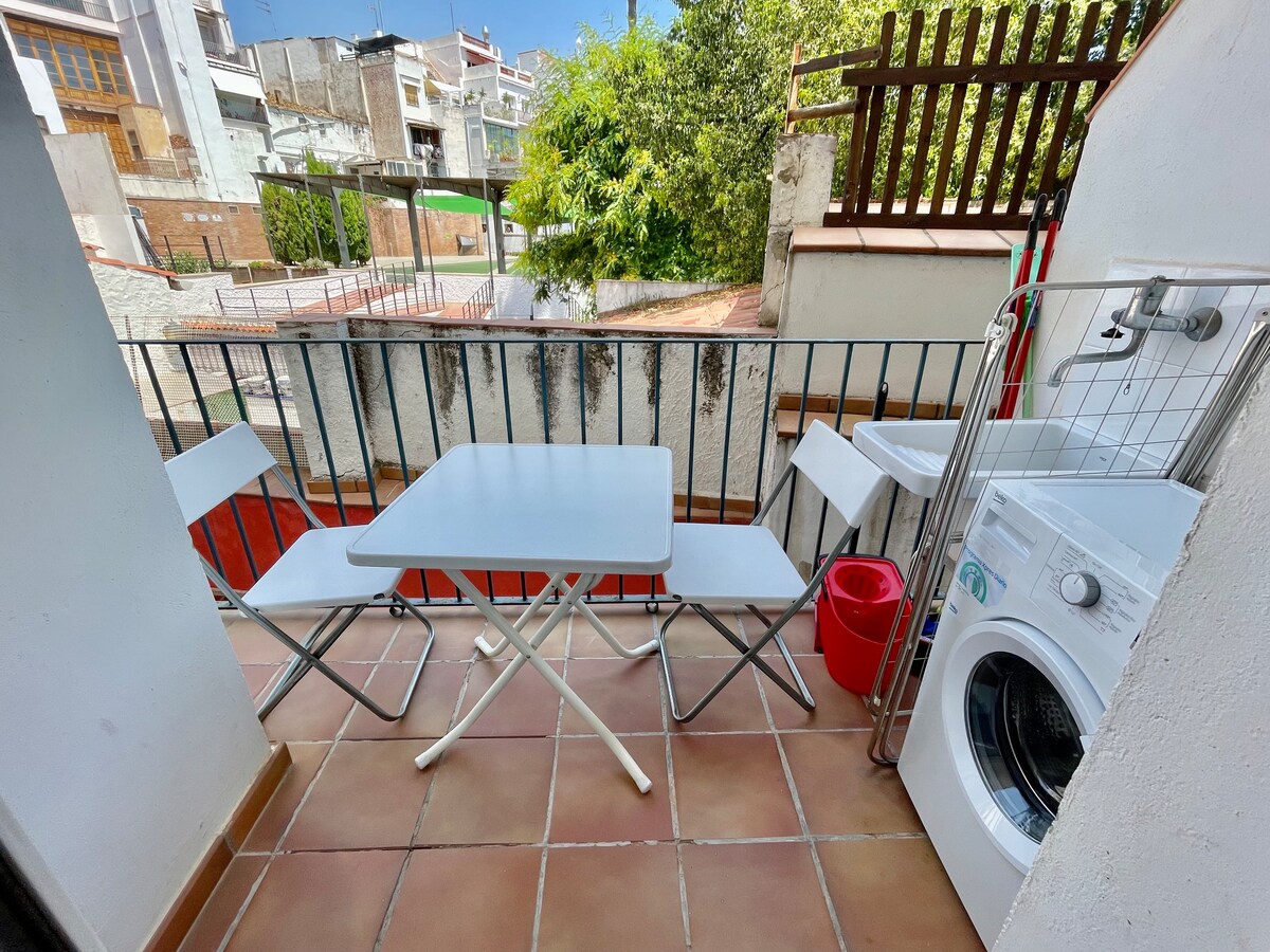 Մեր գեղեցիկ բնակարանը գտնվում է Սիտջեսի սրտում ՝ քաղաքի գլխավոր փողոցին մոտ ։ Կա մեկ ննջասենյակ, մեկ հյուրասենյակ ՝ կահավորված խոհանոցով և մեկ լոգասենյակով ։ Բարձր արագությամբ WiFi կապ: Տեղանքն իսկապես անբացատրելի է, 1 րոպե քայլեք դեպի լողափ, 5 րոպե քայլեք դեպի երկաթուղային կայարան, և այն ամենը, ինչ ձեզ անհրաժեշտ է, իսկապես մոտ է, սուպերմարկետներ, բարեր, ռեստորաններ, խանութներ... Փողոցի տեսարաններով մեծ պատշգամբ կա: Դա ձեզ դուր կգա ։
