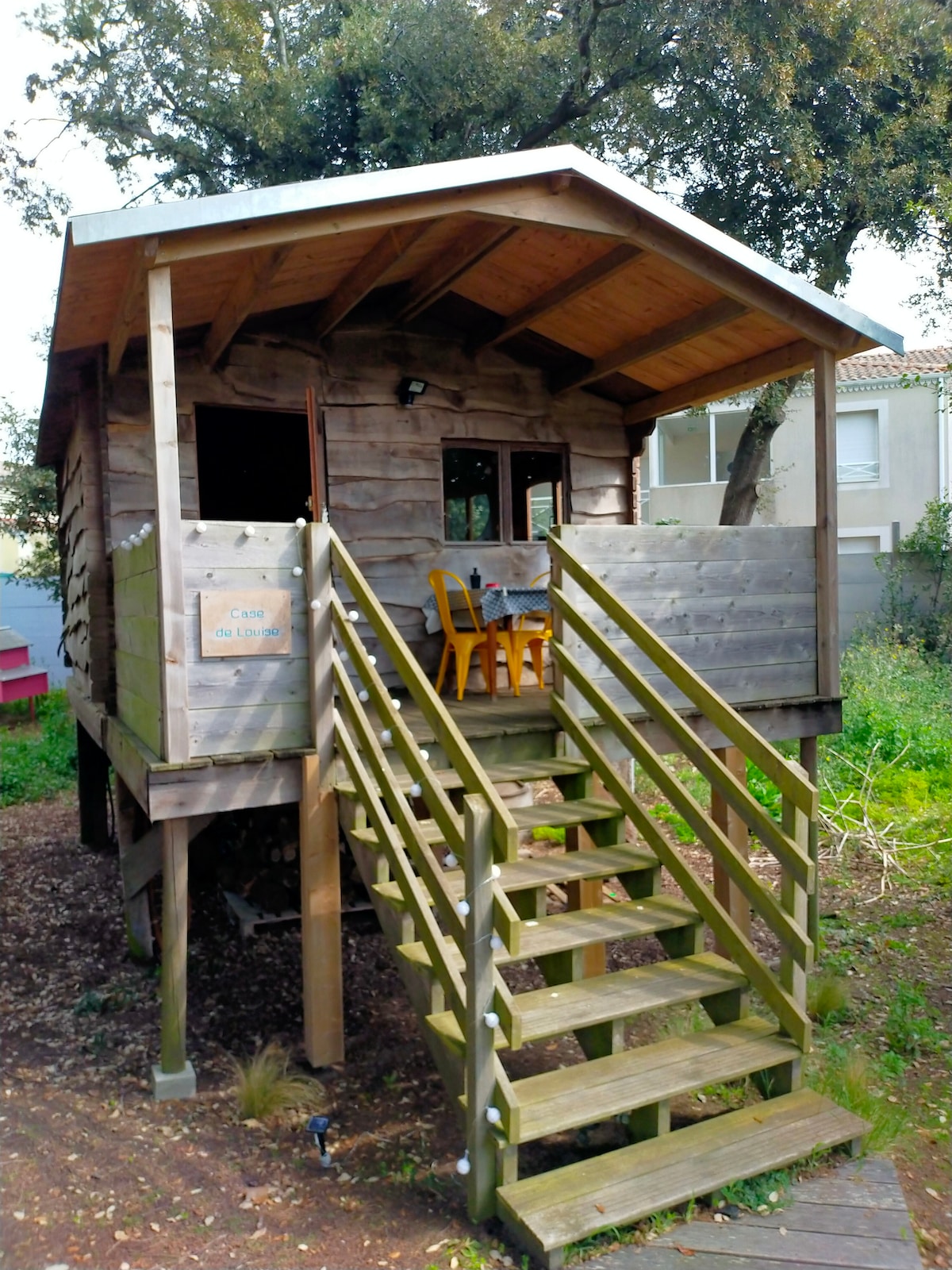 Face à la plage et du centre de Saint Brevin l'océan , venez découvrir pour un séjour (3 nuits min) notre location atypique : une cabane de bois sur pilotis cachée parmi les pins et les chênes verts, idéale pour un couple sans enfant recherchant l'intimité. La cabane est l'hébergement le plus calme et isolé au fond du vaste jardin naturel et arboré qui propose également une grande terrasse en bois autour d'une piscine commune, équipée de multiples mobiliers de jardin pour le farniente.
