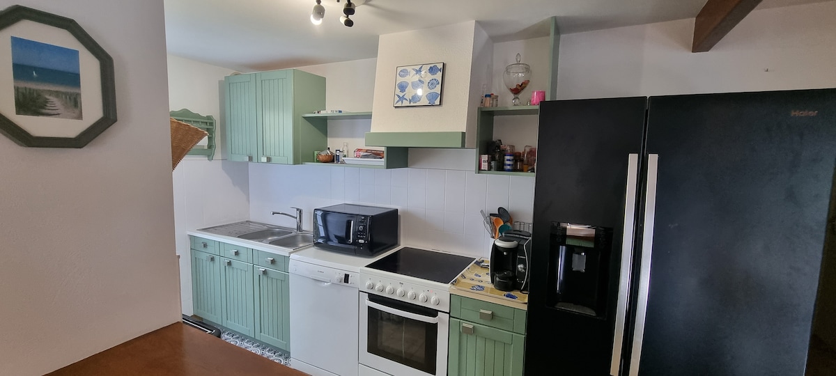 Dans notre maison classée balnéaire, à proximité du centre de Pornichet et de sa gare, un appartement, avec son entrée indépendante, vous attend. La chambre comprend un lit double, une penderie et donne sur une grande terrasse et un jardin. La pièce centrale dispose d une cuisine avec les éléments et équipements permettant d être totalement autonomes. La salle de douche / wc vous est exclusivement réservée. Vous pourrez également profitez des équipements extérieurs : salon, chiliennes...