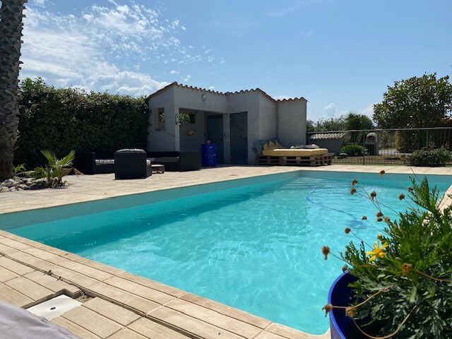 Bienvenue dans notre villa de standing, un havre de luxe et de confort situé juste à côté de la mer pour des vacances inoubliables ! Dès votre arrivée, vous serez enchanté par notre espace extérieur exceptionnel. Imaginez-vous vous détendre au bord de notre grande piscine chauffée, entourée de plusieurs transats et bains de soleil pour des moments de relaxation ultime. Pour les amateurs de jeux, un terrain de pétanque est également à votre disposition pour des parties endiablées.