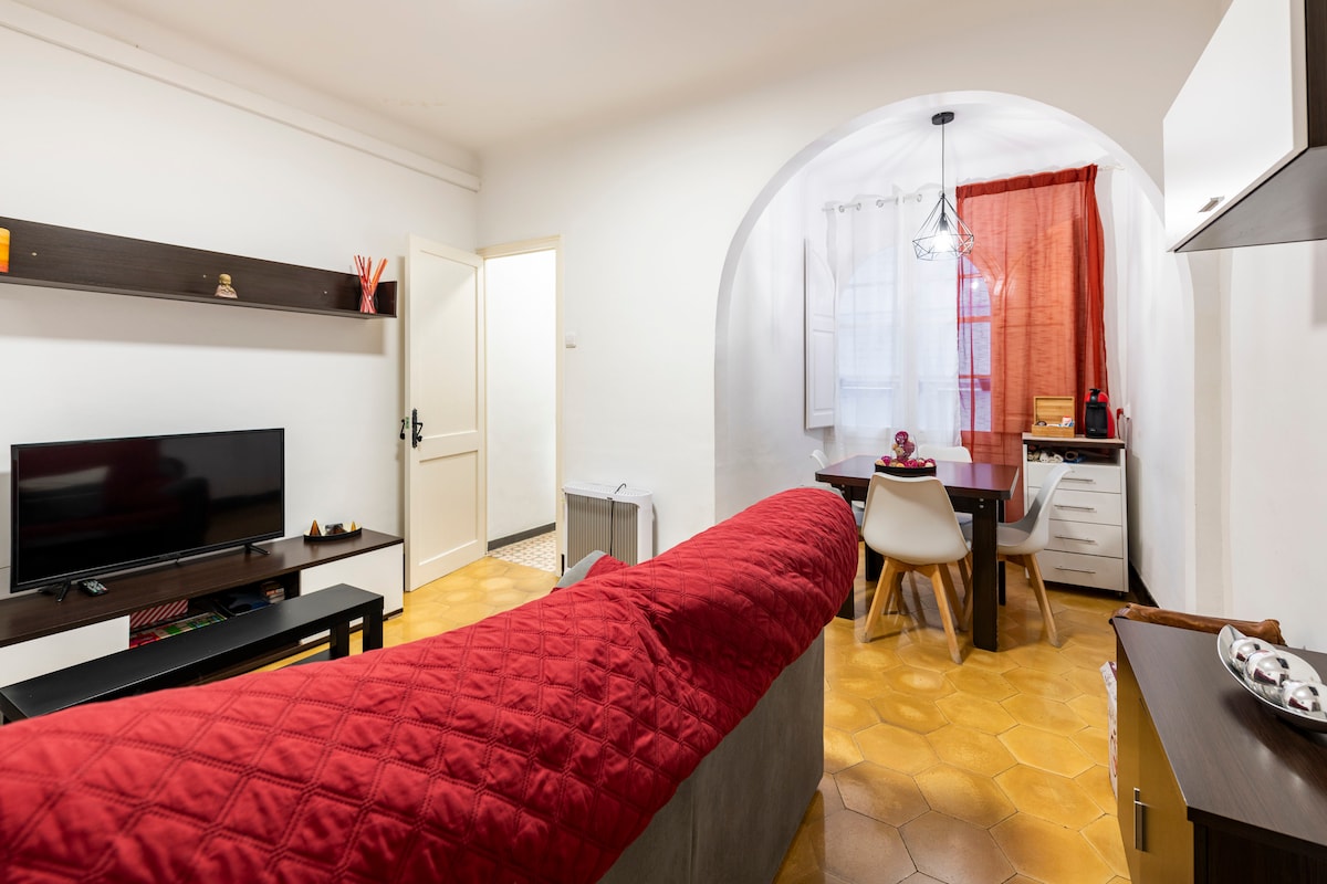 TRAMONTANE: Historic Center. Spacious 2-bedroom apartment. Rated 3 stars: Beach 100 m away, Terrace, Air conditioning in living room and bedroom Washing machine, Dishwasher, TV, Wi-Fi - 2 bedrooms, one of which is on a mezzanine (18 m²) at the rear of the house, quiet at night. - Terrace, dining table, lounge chairs, electric BBQ. - Outdoor parking, 1, 2, or 3-week subscriptions available, access to all metered parking spaces. - 10% discount on stays of 2 consecutive weeks or more.