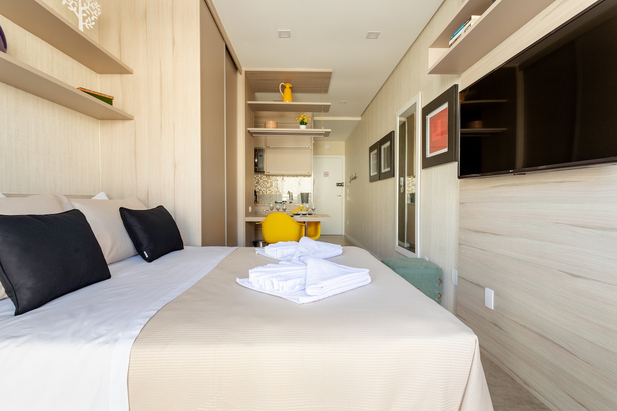 Իդեալական բնակարան մի քանի կամ միայնակ, երկտեղանոց մահճակալ, սեւ վարագույր, օդորակիչ, Smart հեռուստացույց Samsung 43 դյույմ արդեն մուտք է գործել Net Flix, Amazon Prime եւ թվային Tv. Արագ Wi - Fi, Խոհանոց սպասքով, Էլեկտրական վառարան 2 բերան, Էլեկտրական կաթսա, Nespresso սրճեփ, 2 ցնցուղով սեղան, որը իդեալական է աշխատանքի և սնունդի համար օգտագործելու համար: Գազով տաքացվող լոգասենյակ, շամպուն, ձեռքերի ախտահանիչ միջոց, հեղուկ օճառ, զուգարանի թուղթ ։ Ainda կամ ապ. տնօրինել տարածքը հետ տեսակետից կամ կանաչ եւ պողոտայում.