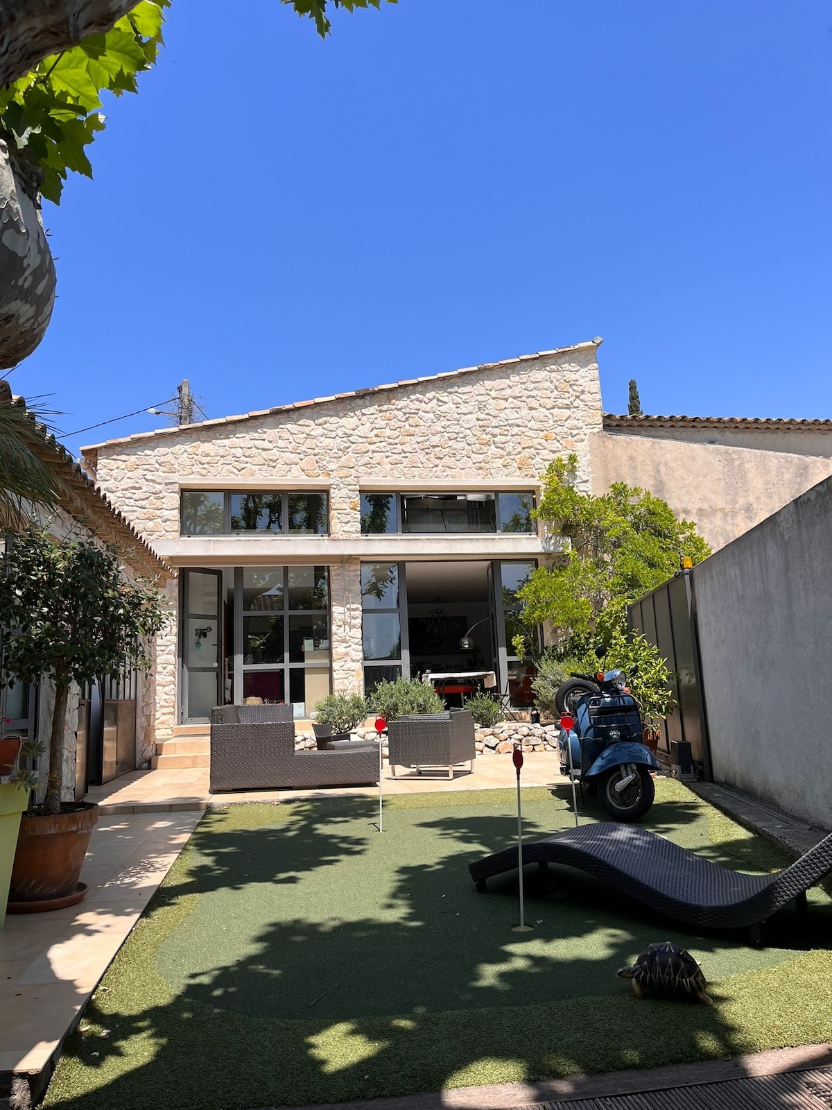 45 մ2 մակերեսով շատ հանգիստ փոքր տուն, որը գտնվում է հյուրընկալողների կողքին ՝ ձիթապտղի ծառերի մեջ ։ Ավտոմայրուղիներին մոտ ՝ դ' Էքս ան Պրովանս (15 րոպե), Մարսել (40 րոպե) և Կապույտ ափից 30 րոպե հեռավորության վրա ։ Անհատական կայանատեղի տան դիմաց ՝ առանձին տեռաս (սեղան և աթոռներ) Հունիսից մուտք դեպի մեր լողավազան(առավոտյան ժամը 10 - ից մինչև երեկոյան 9 - ը,ոչ թե ջեռուցվող)և ամառային խոհանոց (պիցցայի ջեռոց, պլանշա, սառնարան, լվացարան, զուգարան,դանակ - պատառաքաղ...):