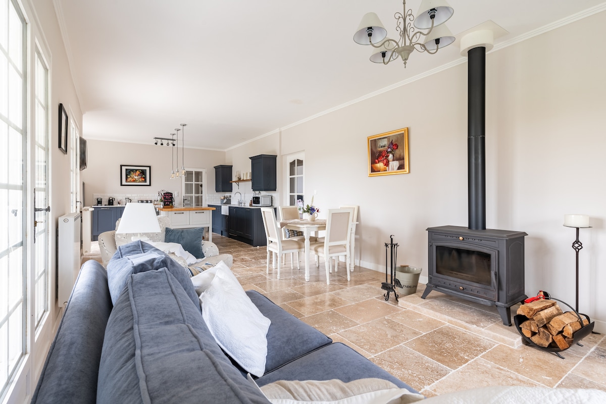 🌾Հանգստության կոկոն գյուղական վայրերի սրտում🌾 Այս 320 մ² քոթեջը նախատեսված է հարմարավետության, տարածքի և համերաշխության համար ։ Այն ներառում է 4 գլխավոր առանձնաբաժին, հանրակացարան, լուսավոր հյուրասենյակ, մեծ ճաշասենյակ և կահավորված խոհանոց ։ Փակ լողավազան, ջակուզի ՝ տեսարաններով, բիլիարդ, բոուլինգի ծառուղի. ամեն ինչ միավորվում է հանգստանալու և լավ ժամանակ անցկացնելու համար ։ Իդեալական է ընտանիքի, ընկերների հետ մնալու կամ խաղաղ միջավայրում սեմինարներ և հանգիստ կազմակերպելու համար ։