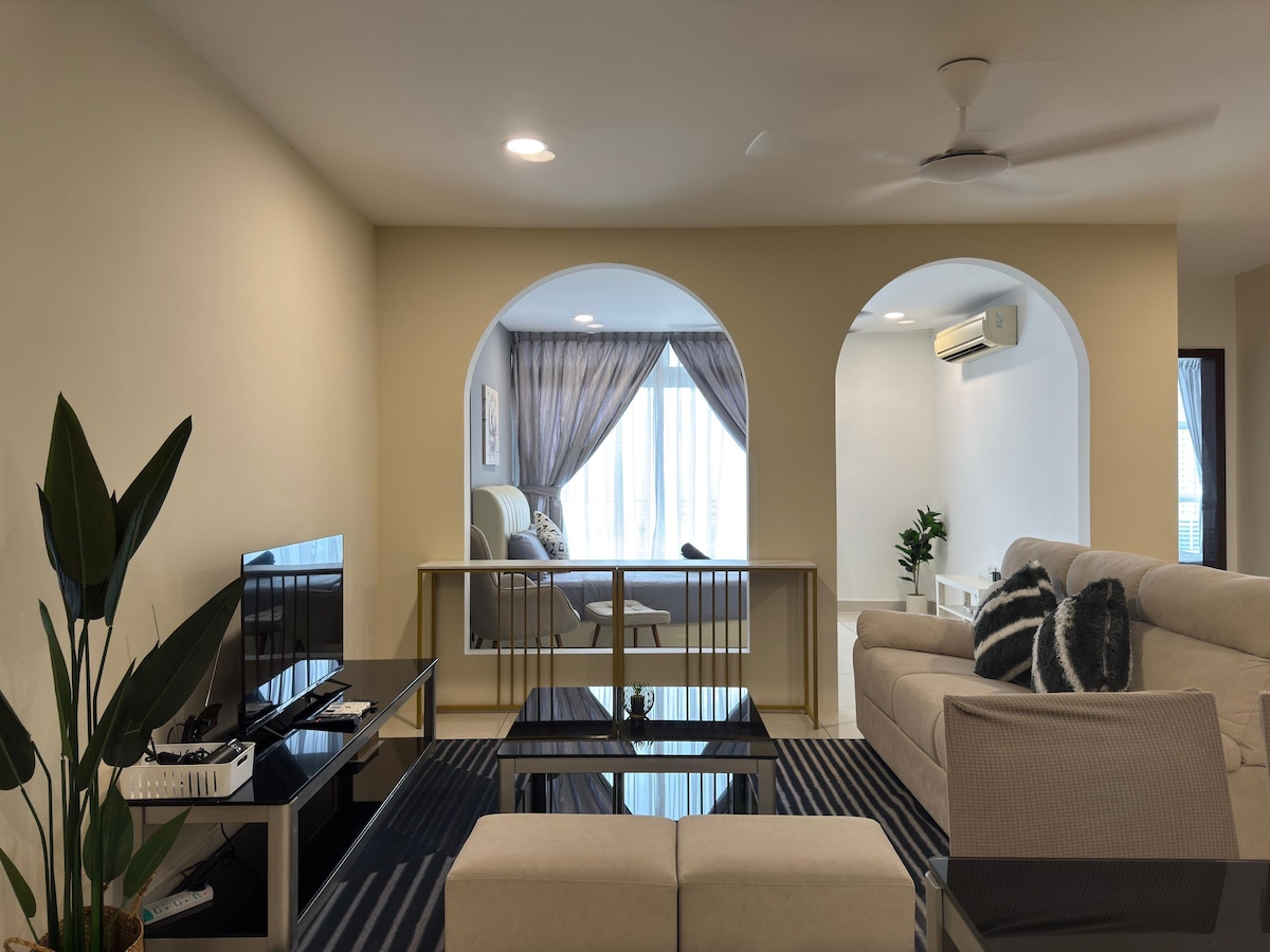 Շքեղ ընդարձակ 3 ննջասենյակ ՝ լոգարանով: Պրեմիում որակի King & Queen չափի մահճակալներ, որոնք երաշխավորում են այստեղ լավ քնել ՝ Միդվալլի Սաութկի մոլի հիանալի տեսարանով: Հիմնական առանձնահատկությունը - Առանձին լոգարան -65" Սմարթ հեռուստացույց YouTube և Netflix հավելվածներով - Լողավազանի սեղան - Ռետրո խաղային վահանակ - Խմելու ջրի դիսպենսեր Շրջապատված է առևտրի կենտրոնով և տեղական համեղ ուտեստների լայն տեսականիով - 2 րոպե քշել դեպի Midvalley Southkey JB - 5 րոպե KSL City Mall - ին - 8 րոպե City Square Mall & Custom JB - ին