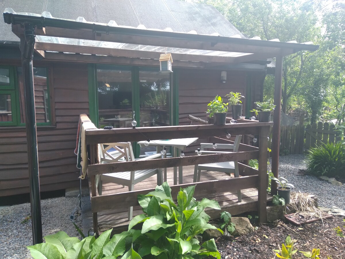 Foxglove Lane is a beautiful, rustic-style, studio cabin, nestled in a quiet and tranquil corner of our permaculture gardens, a stones throw from town. Recently renovated, with principles of sustainability to the fore, Foxglove Lane is self-contained with an open-plan kitchen and dining area. The patio and outside dining area have views of our permaculture gardens and woodland. We have a pet-friendly policy, but do not permit dogs from the restricted breed list.