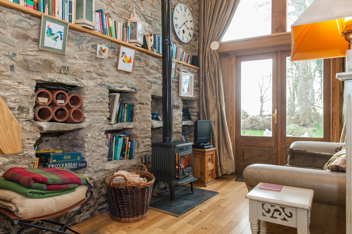 Ռոմանտիկ համագումար - Արագորեն վերափոխված քարե ամբար, 13 - րդ C. Abbey ավերակների և հասուն այգու տեսարաններով: Իդեալական վայր է արևելյան ափով և Դուբլինում (օդանավակայան 30 րոպե) շրջագայելու համար: Մեզանին ննջասենյակ, որտեղից բացվում է բաց հատակագծով հյուրասենյակ և փայտի վառվող վառարան ։