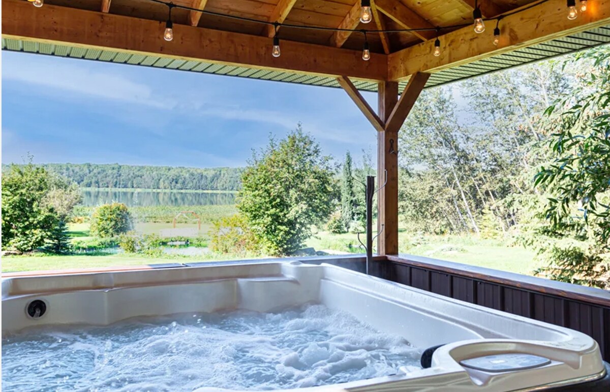 Experience a rustic-modern escape at Lakeview Lodge. This cabin features air conditioning, heat, TV, coffee maker, and a full private washroom for ultimate comfort. Outside, enjoy your own fire pit with cozy Kuma chairs and peaceful surroundings. Drive right up to your door for easy access and relax under the stars in a perfect blend of modern convenience and outdoor charm. Ideal for couples, families, or a solo retreat. Hot Tub and Sauna is open 24/7 - Located close to the Lodge - Shared.