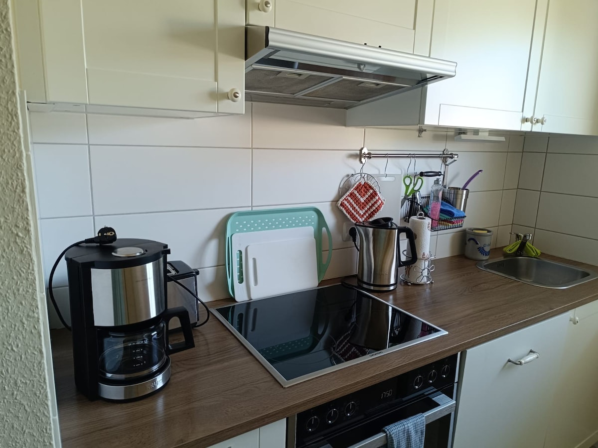 Ձեզ սպասում է 45 քառակուսի մետր բնակելի տարածքի գոհար գյուղական շրջակայքում ՝ Դելբրյուկի սահմաններից դուրս, B64 - ի մոտակայքում ։ Լիովին կահավորված բնակարան ՝ խոհանոցով, նստած տեղով, հեռուստացույցով, Wi - Fi - ով, թախտով, առանձին ննջասենյակով և լոգասենյակով ՝ ցնցուղով, զուգարանակոնքով և կտուրով ։ Լրացուցիչ երեխա ՝ ըստ պահանջի ։ Լվացքի մեքենան հասանելի է ։ Առկա է առանձին մուտք և մեքենայի կայանատեղի ։ Սրբիչներ, ցնցուղի գել / օճառ և անկողնային սպիտակեղեն ՝ ներառյալ Ճանապարհի երկայնքով մեկ բենզալցակայան և հանգստի վայր են ։