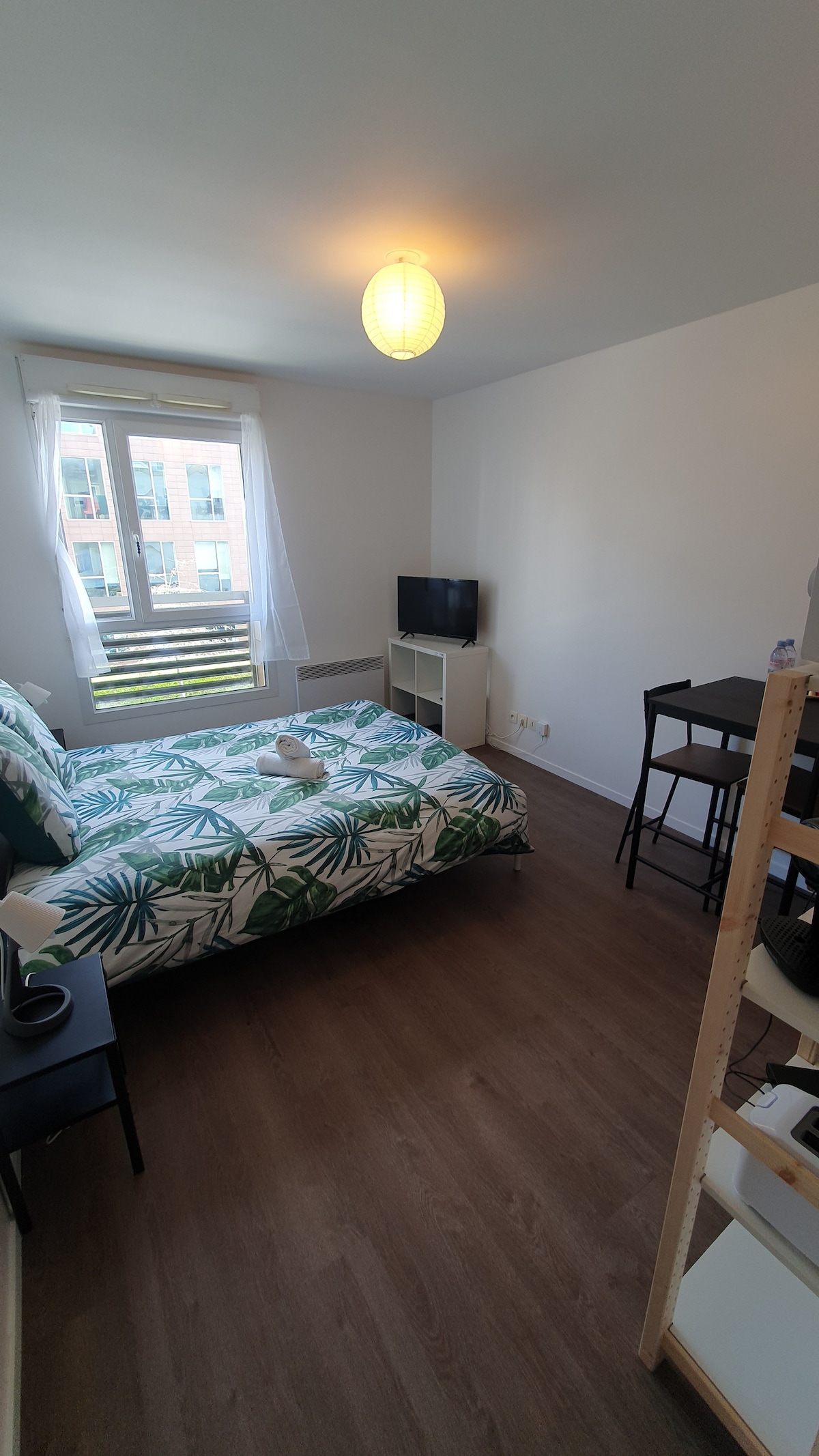 Comfortable 27m2 Studio for 4 people on the Disneyland theme 7 minutes by bus from the park and close to the Val d'Europe/Vallée Village Shopping Outlet Center. 🔎 Ideal location (right in the center of Magny-le-Hongre) and close to all amenities: bakeries, restaurants, transport, golf.. Composition 👪 : - Two Double Beds (one high 140x190, one king size 160x200🤩) 🛌 - Bathroom (bathtub) 🛀 - Kitchenette 🍔🍽️ - WC 🚽 - Free private parking 🅿️ See you soon! ✌️🤠