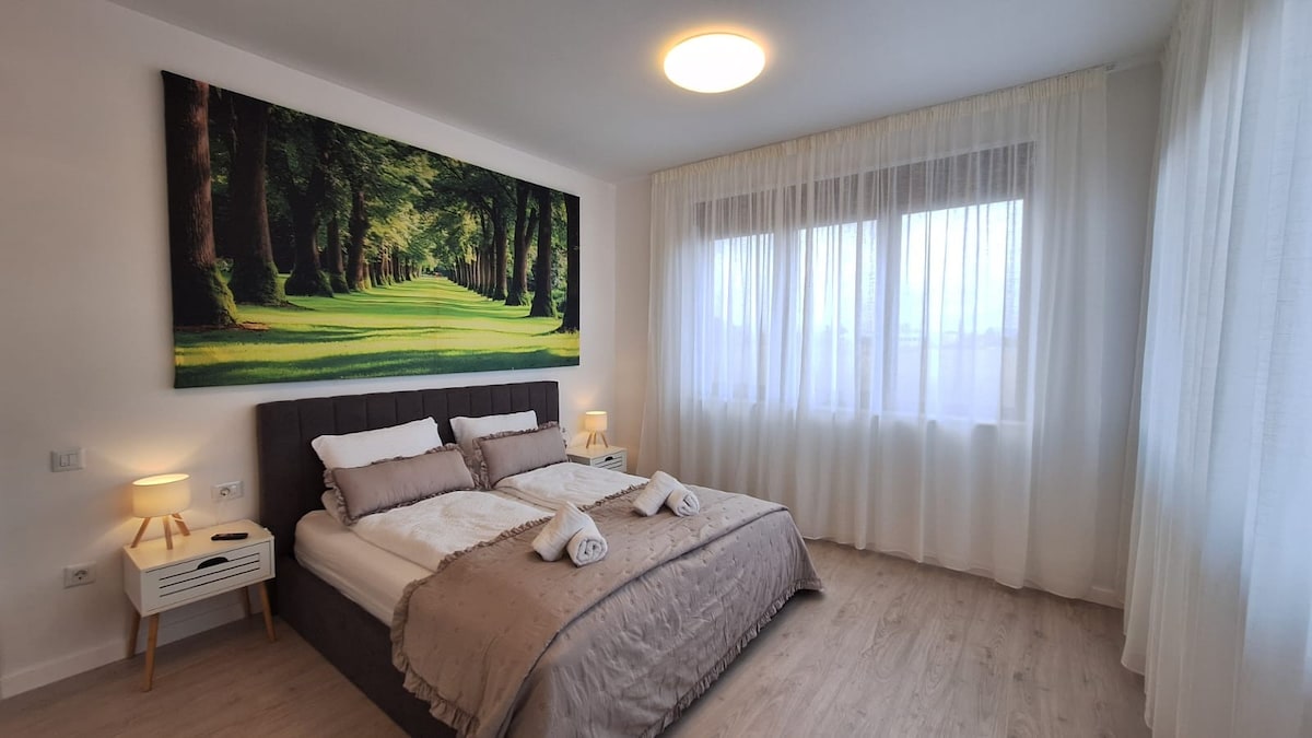 Գտնվում է ճանապարհին Poiana Brasov, բնակարանը ընդամենը 4 րոպե հեռավորության վրա հին քաղաքի կենտրոնից կամ 10 րոպե քայլում (օգտագործելով այլ երթուղի):Դուք մոտ եք Բրազովի հին կենտրոնին, բայց միեւնույն ժամանակ ճանապարհին հայտնի լեռնադահուկային լանջերին Poiana Brasov. Այս 120 քմ նոր բնակարանը իդեալական վայր է մնալու համար,լավ է զույգերի,գործարար ճանապարհորդի և երեխաների հետ ընտանիքների համար: Մեծ լավ օր Պոիանա Բրազովում լեռնադահուկային հանգստից կամ հեծանվավազքից հետո (ամռանը) կամ գեղեցիկ իսկական քաղաք Բրազով: