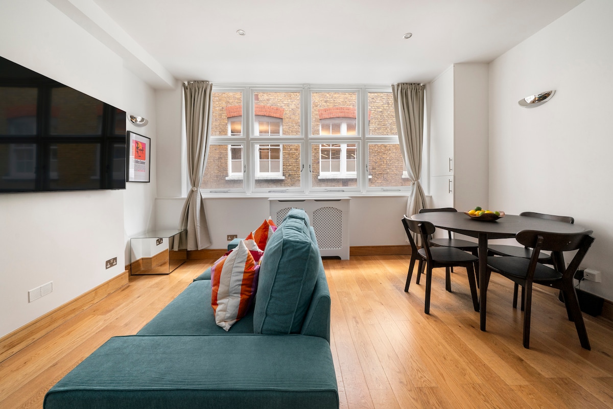 Discover elegance and luxury in this spacious Covent Garden apartment. This one bedroom apartment offers a spacious living area with sofa bed and modern finishings, kitchen with view on the living room, a spa-like bathroom and one bedroom with a king bed. This sophisticated haven offers the luxury of a porter service and lift access. Professionally managed by VI&CO for a seamless, boutique-hotel stay.