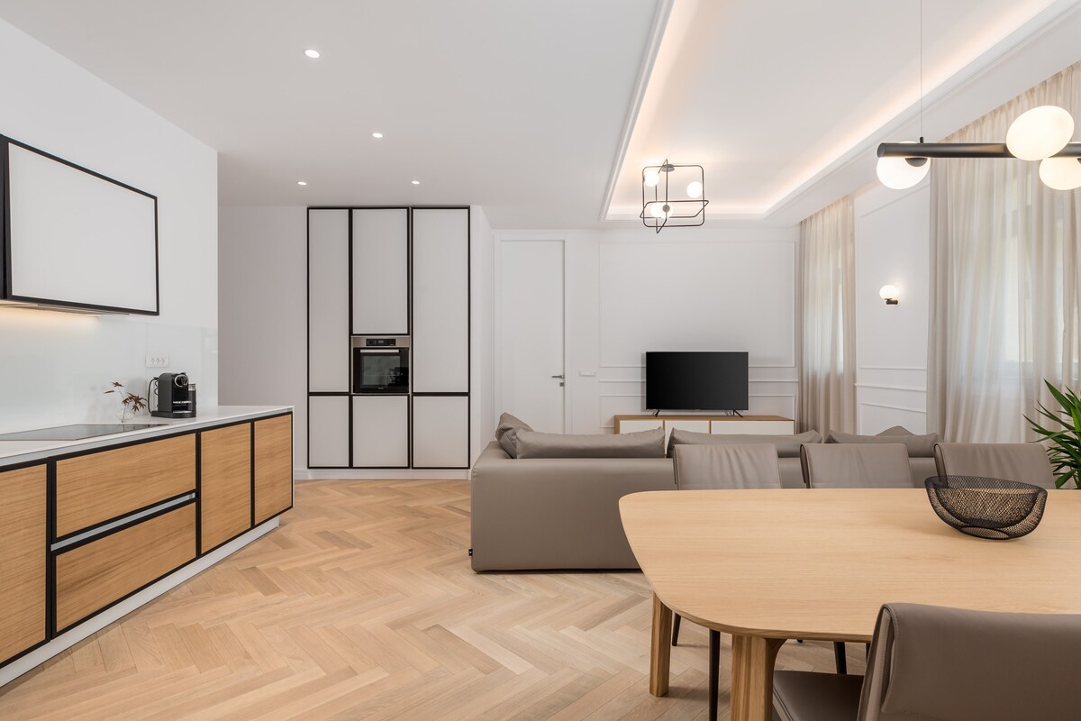 Plaza Apartments are located in the center of Opatija, on the adress Maršala Tita 128, 30 meters from Slatina beach, the Opatija Lungomare promenade and many other historical sights of Opatija. They are located in a historic building which was completely restored and equipped in 2021. They are a combination of historical architecture and contemporary design that captivates with its simplicity and charm. It contains 15 apartments decorated in neutral tones with modern furniture.