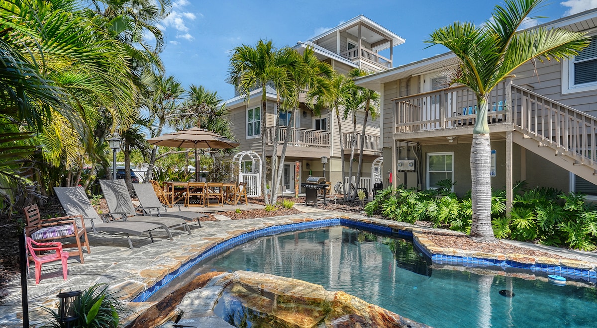Location!!! North end of Anna Maria . Steps to the Bean Point Beach and everything you need for your perfect AMI Vacation. The duplex property features fully remodeled units thoughtfully arranged around a free style heated pool, creating a private, resort-style atmosphere. Guests may reserve 1 unit or the entire property , total of 5 units avail for rent in multiple duplexes making it ideal for extended families or group gatherings seeking both togetherness and privacy. MAX Occupancy - 4 people