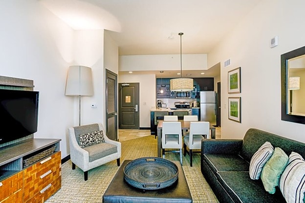 A beautifully appointed two bedroom two bath suite. Centrally located in the heart of the Port Warwick district. Sleeps 4 with one queen size bedroom and a second bedroom with a twin and a trundle. Suite includes fully supplied kitchen and bedrooms and bath with cookware and linens. Full size washer and dryer and laundry supplies. Large living area includes 2 HD flat screen televisions, wireless network throughout and direct cable subscription. 24 hour access to our fitness center.