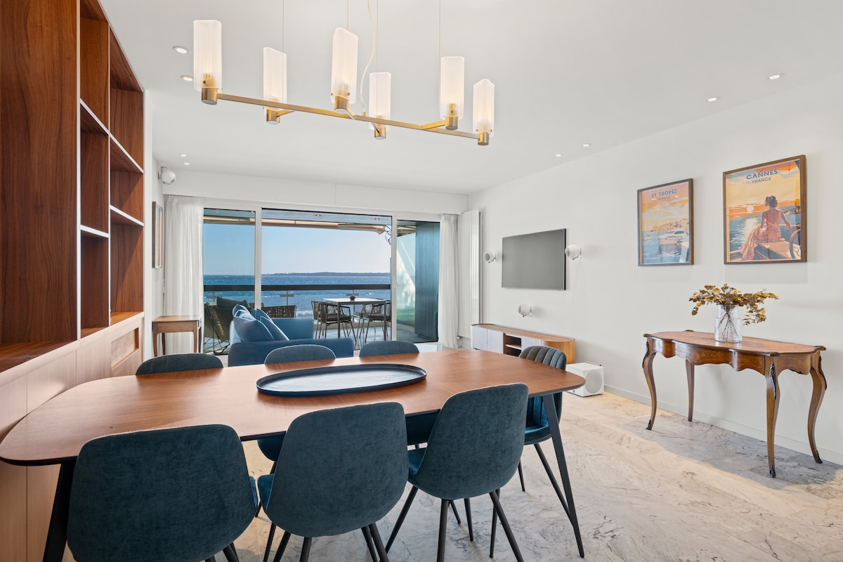 Վերանորոգված բարձրակարգ բնակարան ԱՆՄԻՋԱՊԵՍ լողափի ԴԻՄԱՑ, ԼՈՂԱՓԻՑ ընդամենը 10 ՎԱՅՐԿՅԱՆ հեռավորության վրա, անմիջապես ԿԱՆՆՈՒՄ ։ ՓԱԼՄ ԲԻՉ Հյուրասենյակ ՝ հատակից մինչև առաստաղը ձգվող պատուհաններով, որոնք բացվում են դեպի ԱՌԱՆՁԻՆ ՊԱՐՏԵԶԻ ՏԵՌԱՍ ՝ հենց ձեզ համար 2 հարմարավետ ննջասենյակ ։ 2 ցնցուղ 2 սանհանգույց Ջեռուցվում է, ճոպանուղի Որակյալ սարքավորումներ ։ Մանրաթել ԱՆՎՃԱՐ ԿԱՅԱՆԱՏԵՂԻ ։ Ավտոբուսի կայարան ԽԱՆՈՒԹՆԵՐԻ ՌԵՍՏՈՐԱՆՆԵՐ ԿԱՆՆԻ շքեղ և զբոսաշրջային թաղամասում ՝ Կրուիզետ ՓԱԼՄ ԲԻՉ Առաջարկվում է նախաճաշի ԶԱՄԲՅՈՒՂ և ՄԱՔՐՄԱՆ ՎՃԱՐ ։
