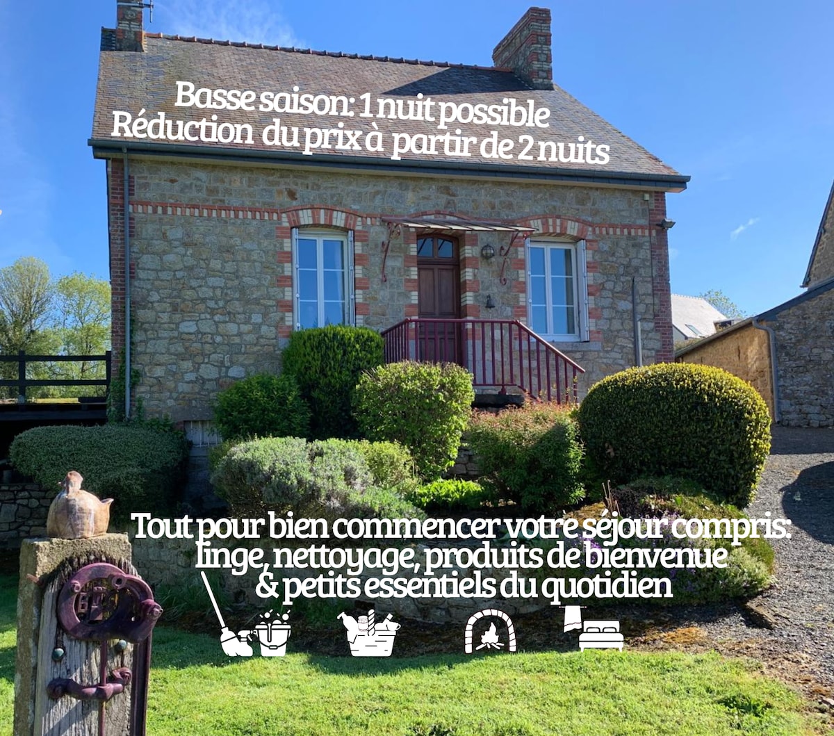 Հմայիչ փոքրիկ քոթեջ ՝հանգիստ և նրբագեղ,այն հրավիրում է ձեզ գալ և հանգստանալ այնտեղ ։ Դուք կլինեք կանաչ և խաղաղ միջավայրում ։ Գտնվում է Մոնտ ավտոկանգառներից 5 կմ հեռավորության վրա և անվճար երթուղայիններից 1,5 կմ հեռավորության վրա Ձեր հեծանիվները տեղադրելու համար պաշտպանված տարածքը հասանելի է մեր հյուրերին ։ Առանձին տեռաս ՝ պարտեզի կահույքով և կախովի աթոռով կանաչուղին գտնվում է 1 կմ դեպի Մոն Սեն Միշել , Պոնտորսոն կամ Կանկալե, Սեն Մալո գեղեցիկ զբոսանքների համար