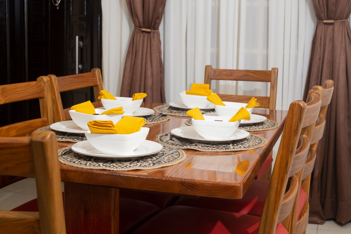 Welcome to the OBUDU Suite, a charming retreat inspired by the OBUDU Plateau's historic beauty in Cross River State. This spacious 3-bedroom en-suite features a modern living area and a fully-equipped kitchen for your convenience. Local furnishings and artwork highlight the region's character and African craftsmanship. Designed for comfort and authenticity, every corner of the suite promises a tranquil and memorable stay, making you feel right at home from the moment you arrive.