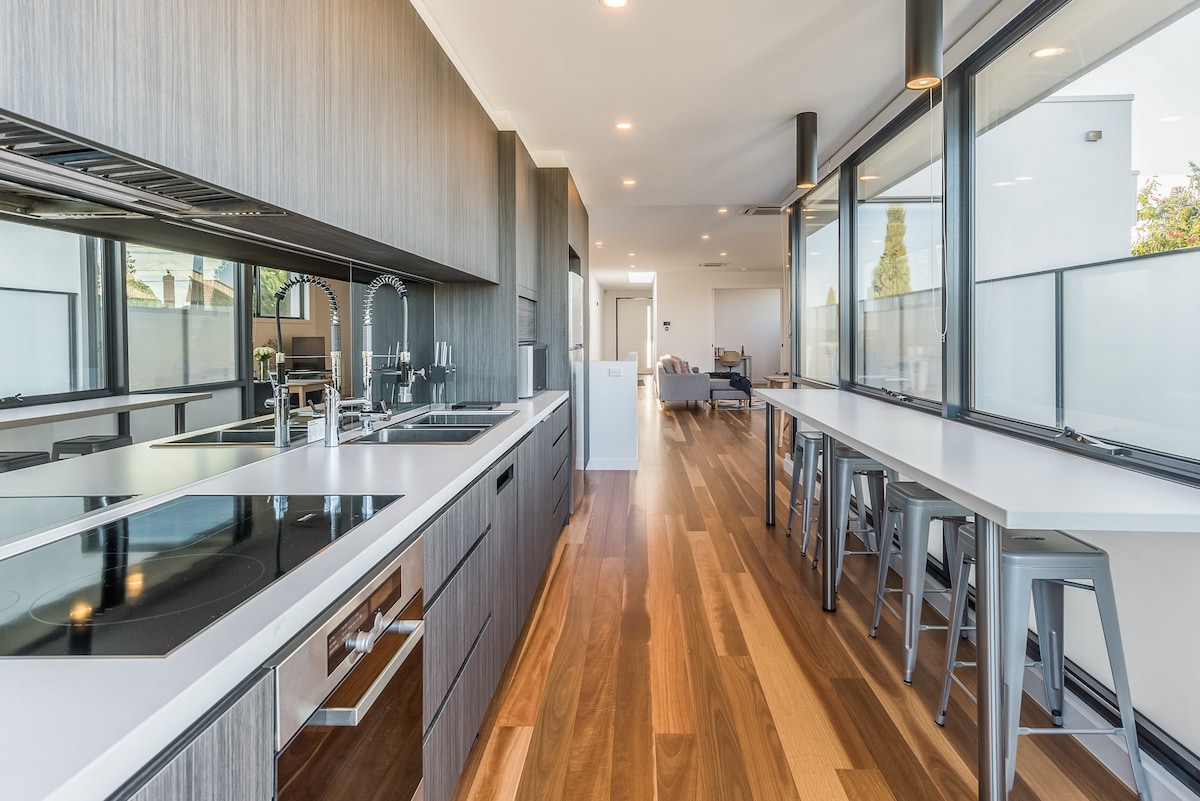 Prestigious Airbnb Select Apartment. Free onsite EV charger ! Soak up the energy of this funky, award-winning apartment. Bright, contemporary art and beautiful mosaic walls make this a truly exceptional, inspiring space. Lounge in the stylish courtyard and just relax! Please note that an oversized 4WD or Van will not fit in the security parking . There is 24 hour free permit parking outside for these vehicles Australian Open dates available