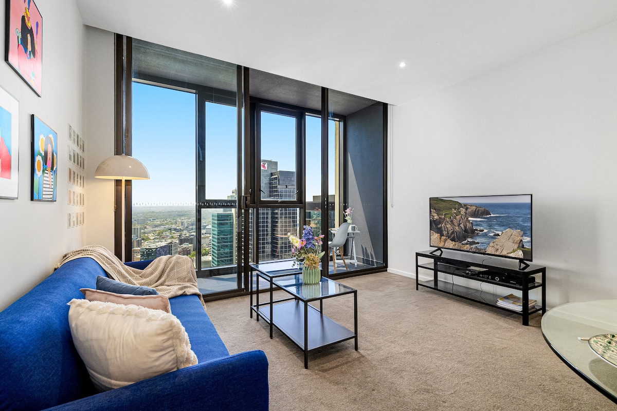 Վայելեք շքեղ ապրելակերպի էպիտոմը այս 65 մ² մակերեսով հիասքանչ բնակարանում, որը գտնվում է Մելբուրնի Փարիզ կոչվող թաղամասում։ Վայելեք քաղաքի հիասքանչ տեսարանները ձեր մասնավոր բնակության հարմարավետությունից ՝ լի ընդարձակ լաունջով, որն ունի կաշվե շեյզ լաունջ և 3 տեղանոց կաշվե բազմոց: Ժամանակակից ճաշասեղանը երկու տեղ է, որը կատարյալ է մտերմիկ հավաքույթների համար ։ Զբոսնեք մարմարե ցնցուղարանում ՝ փակված վիճակում, և լոգասենյակում ՝ դիմահարդարման լուսադիոդային լուսավորությամբ ։ Լողավազանը ջեռուցվում է ամբողջ տարվա ընթացքում, իսկ Մելբուրնում ՝ լավագույնը ։