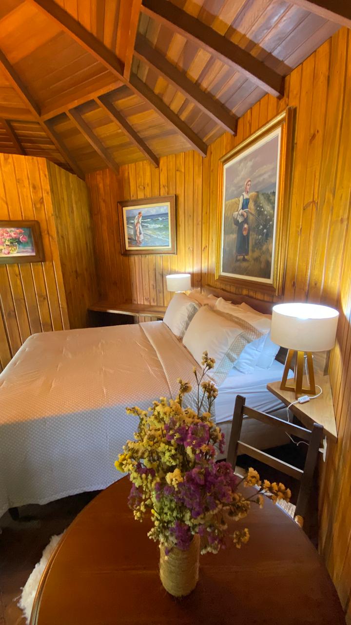 Casa de hóspedes completa, voltada para famílias. A casa acomoda até 6 pessoas. Possui 3 quartos, sendo uma suíte ampla e mais um banheiro Todo o espaço é climatizado. Possui smart tv, lareira e wi-fi. Cozinha completa com geladeira, fogão, air fryer, cafeteira e microondas, panelas, pratos, copos, talheres e utensílios básicos de cozinha. Sacada dos fundos coberta e com vista para o lago. Acesso a piscina da fazenda.