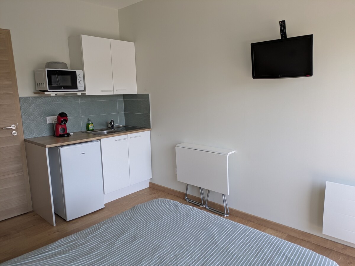 Անկախ ստուդիա, որը գտնվում է մեր տանը, կենտրոնին մոտ և հասանելի է կիրակի երեկոյանից մինչև ուրբաթ առավոտ, իդեալական է աշխատանքային ուսանող կամ ճանապարհորդող աշխատողի համար: Այս ամբողջովին վերանորոգված 15մ2 ստուդիան հիանալի կահավորված է նոր 140 սմ մահճակալով, բաց լոգասենյակով (ցնցուղ և զուգարան), խոհանոցիկով: Դուք կգնահատեք մեր կացարանը իր հարմարավետ մահճակալի և անկախության համար: /!\\ ԽԻՍՏ չծխողների համար, տան դիմաց ծխել չի թույլատրվում: