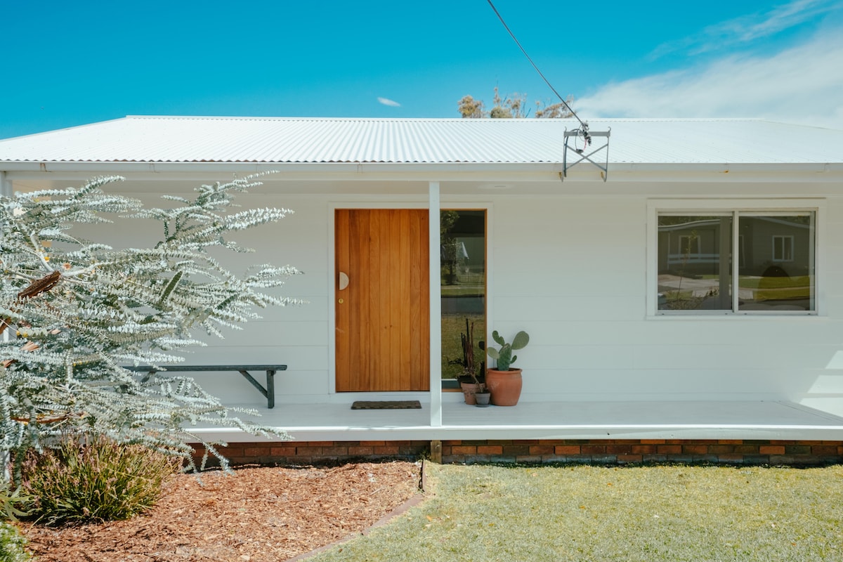 Come Relax! Renovated beach cottage with Culburra Surf Beach at the end of the street & short drive to the white sands of Jervis Bay! Proximity to many beautiful south coast event venues. King, Queen, Triple rooms, air conditioning, full kitchen, purified water, dishwasher, washer, dryer, 55’ smart TV, unlimited NBN/WiFi/Netflix. Sofa & table seating for 8. BBQ & firepit with extensive private undercover entertaining areas. Outdoor freshwater still bath hot tub/shower. Child and pet safe yard.