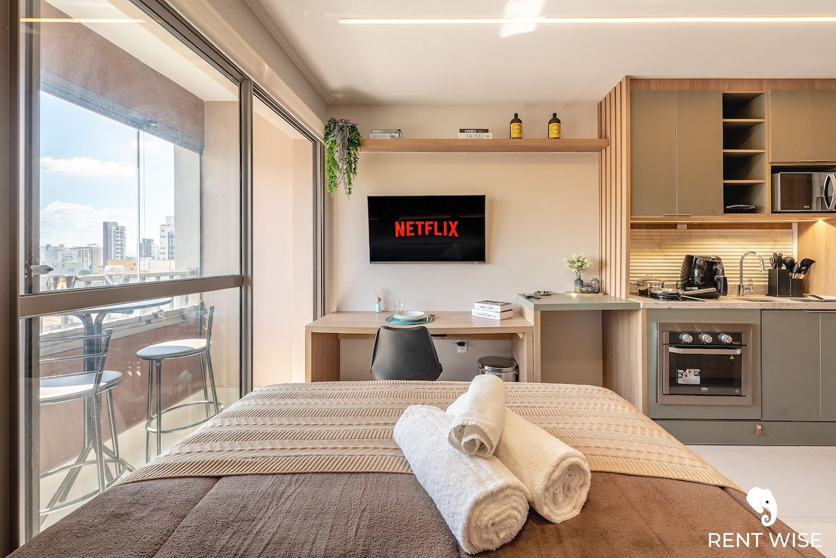 Ստուդիան նախատեսված էր հյուրերին գործնականորեն սպասարկելու համար ։ Պլանավորված կահույքը, ֆունկցիոնալ խոհանոցը և բարդ դիզայնը ապահովում են կազմակերպվածությունն ու հարմարավետությունը ։ Գտնվելու վայրն աննկարագրելի է ՝ «Գրին Լայն» մետրոյից 150 մ հեռավորության վրա, որտեղից հեշտությամբ կարելի է հասնել Ավ. Պաուլիստան և Իսպանիայի հիմնական կետերը: Բացի այդ, դուք կլինեք Իպիրանգայի թանգարանից ընդամենը մի քանի րոպե հեռավորության վրա ՝ ավանդական, հանգիստ և հմայիչ թաղամասում ։
