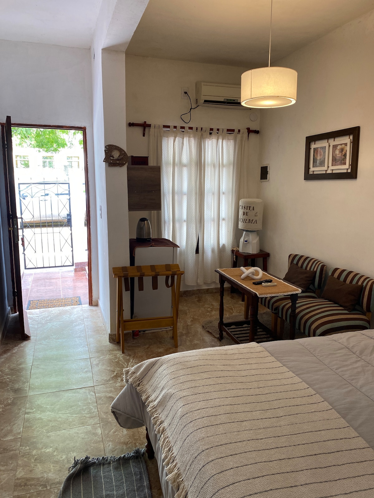 Կենտրոնին շատ մոտ և կարևոր առողջապահական ԿԵՆՏՐՈՆԻՑ մի քանի մետր հեռավորության վրա Ես ձեզ առաջարկում եմ ընդարձակ, լուսավոր, անհատականացված տարածք, որտեղ յուրաքանչյուր մանրուք մանրակրկիտ մտածվել է ձեր հարմարավետության համար, որպեսզի ձեզ զգաք ինչպես տանը: Որպես տանտիրուհի ՝ ես հանձն եմ առել համոզվել, որ ձեր փորձառությունը յուրահատուկ է և հաճելի ։ Երբ վերադառնաք Curuzú Cuatiá, դուք կունենաք միայն մեկ տեղ ՝ այս հարմարավետ բնակարանը, ձեր տունը տնից հեռու:
