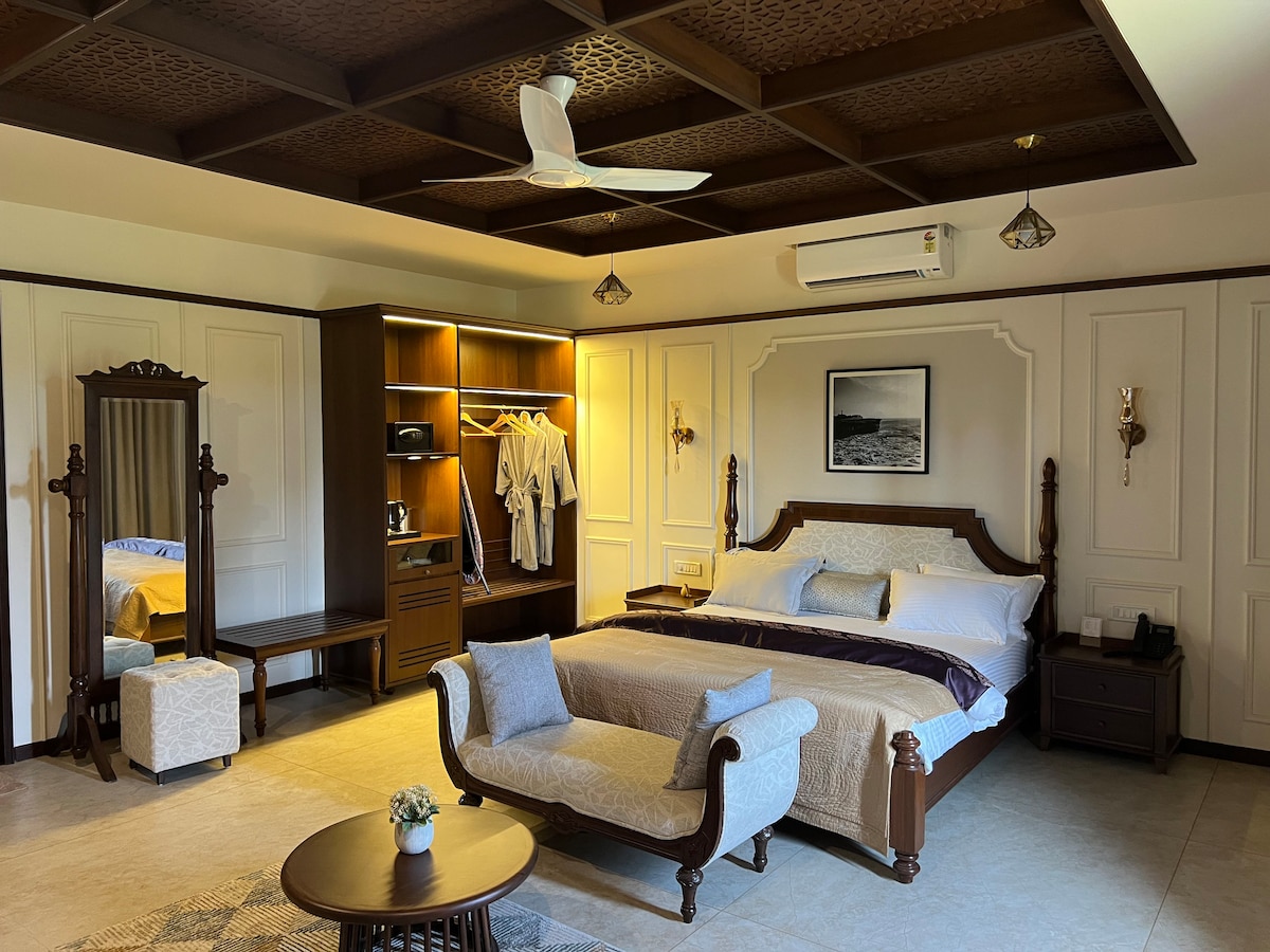 Welcome to the Palash Room, where elegance meets tranquility. Thoughtfully designed for travelers seeking comfort, privacy and a relaxed stay, the Palash Room offers a perfect blend of modern amenities and natural warmth. Immerse yourself in a soothing ambience inspired by nature, with tasteful décor, soft lighting, and premium furnishings that ensure a memorable and restful stay.