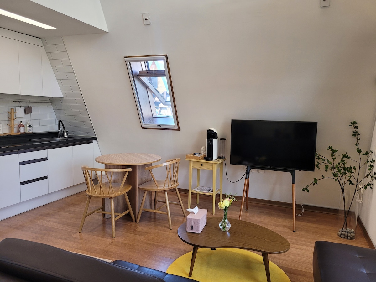 Սա փոքրիկ նոր շենք է հանգիստ բնակելի տարածքում ՝ Գանգնյունգ կայարանից 5 րոպե հեռավորության վրա ։Իմ հիմնական ինտերիերը ինտերիերի դիզայնն էր, ուստի ինձ հետաքրքրում էր ճարտարապետությունը:Ես նման վաղեմի ձգտում տեսա ռոմանտիկ տանը: Ժամանակակից և զվարճալի դուպլեքս շենք, որը կառուցված է սպիտակ երանգների և փայտի համադրությամբ, որոնցից յուրաքանչյուրն ունի իր առանձին լոգասենյակը առաջին և երկրորդ հարկերում, և ցույց է տալիս դիզայնը ՝ համոզվելու համար, որ լույսը և քամին աշխատում են ՝ միաժամանակ լիովին արգելափակված լինելով դրսից ։ Երկրորդ հարկից, արևի լույսից և քամուց բացվող տեսարանն էկզոտիկ է և առանձնահատուկ, ուստի այն հանգիստ է ։ Առաջին հարկի տախտակամածի փոքրիկ պարտեզում ծաղկած ծաղիկները ծաղիկների մեջ են ։ Կարծում եմ ՝ կարող եք որոշ ժամանակով մոռանալ ձեր առօրյայի մասին և հանգստանալ ՝ ձեր միտքը լվանալու համար ։