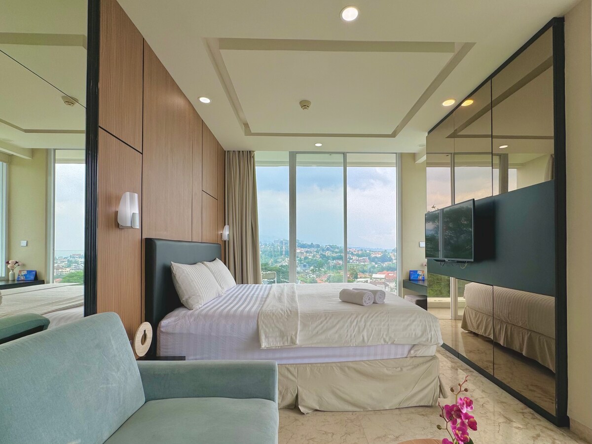 Immerse yourself in the vibrant heart of Bandung at this stylish studio on 10th floor of Parahyangan Residences. Enjoy modern amenities like a fully-equipped kitchen, high-speed Wi-Fi, and a 50" smart TV with Netflix. Indulge in resort facilities, contactless check-in, and nearby conveniences for a perfect staycation, holiday, or work-from-home experience. Now featuring a Reverse Osmosis drinking water, food waste disposal and new washing machine.