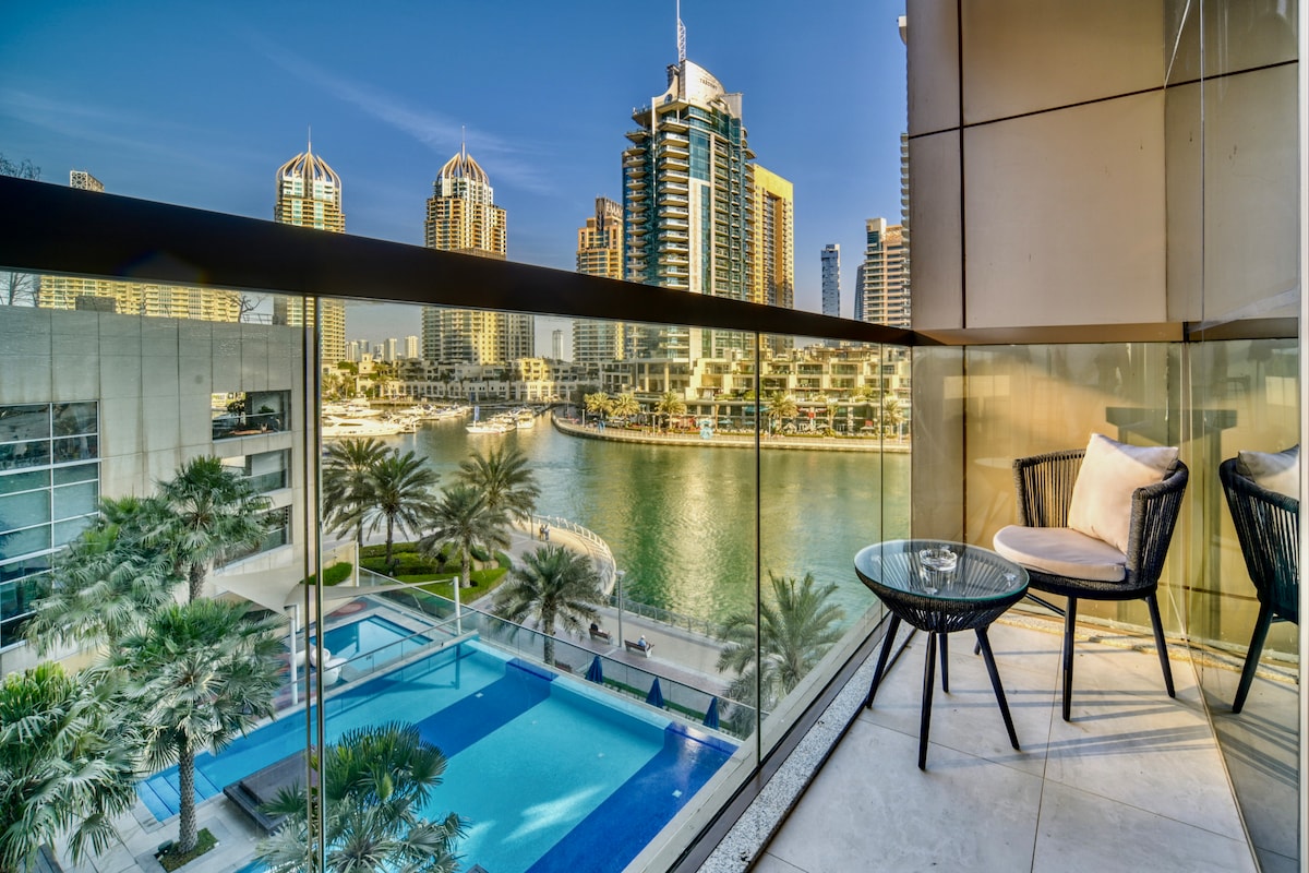Նորաձև 1BR ՝ Մարինայի տեսարաններով
