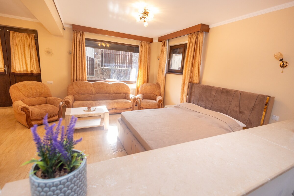 Nestled in a 15,000 sqm private garden, our charming country cottage features three separate houses with four bedrooms, a cozy living room, a fully equipped kitchen, barbecue area, and private bathrooms in each house for added comfort. Decorated in authentic Transylvanian style, it offers a peaceful retreat where deer and other wildlife often roam freely in the yard. Ideally located between Transylvania and Muntenia, with easy access to Bran, Brașov, Sinaia, and southern Romania.