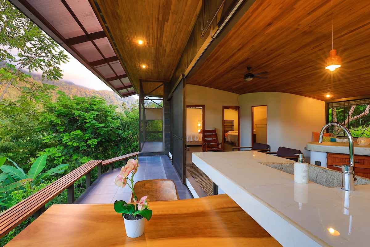 Քնելու համար իջեք և արթնացեք մոտակա անձրևային առուների, օվկիանոսի հեռավոր ալիքների և արևադարձային թռչունների նուրբ բաբախյունը ՝ վերկանգնվող ծառի գագաթներով ։ Այս ժամանակակից, բայց հարմարավետ 1bd/1ba - ն ունի խոհանոցային բոլոր հիմնական պարագաները, խորովածը և շքեղ լոգարանը ՝ ջունգլիների տեսարաններով և կրկնակի ցնցուղի գլխիկներով ։ Դուրս եկեք և մտեք անծայրածիր լողավազան ՝ անհատական լուսավորությամբ և օվկիանոսի տեսարաններով ։ Կապիկները, սահնակները, տուկանները, կոատիները և ջրվեժները շատ են ։ Շրջապատեք ձեզ համերաշխ, կենսունակ, բնական գեղեցկությամբ: