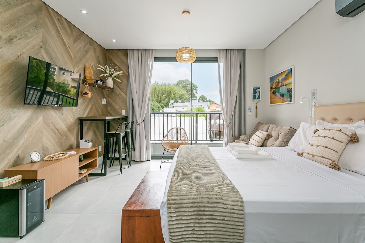Մենք @ greenhouseexperience - նենք Բացառիկ հանգիստ բնության գրկում ՝ Jurerê International - ից ընդամենը 3 կմ հեռավորության վրա ։ Մեր շալեն, որը կատարյալ է զույգերի համար, առաջարկում է անհրաժեշտ հարմարավետություն՝ բնության հետ կապ հաստատելու համար։ Հանգստակեցեք ծառերով շրջապատված պատշգամբում, վայելեք չոր սաունան, բացօթյա ջակուզին և ջերմացեք փայտի վառարանով։ Սեփականությունում կա նաև բնակելի տարածք և մեկ այլ տնակ, որտեղ հյուրերի և այցելուների համար գործում է բուժական կենտրոն։