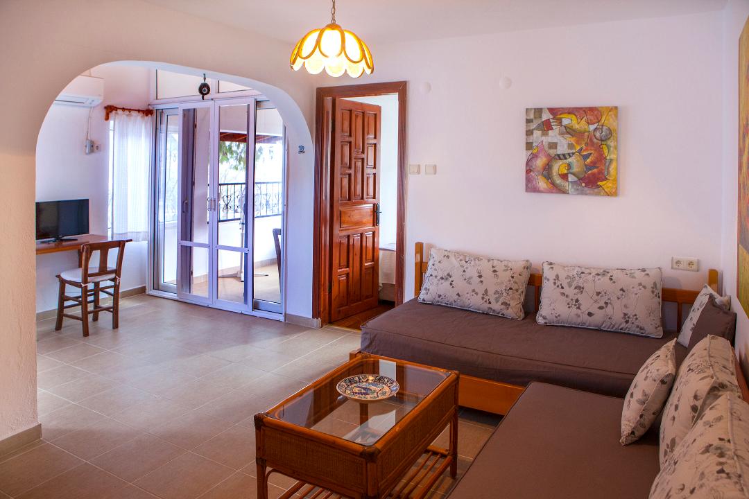 Ծովային տեսարանով մեր առանձին սենյակների չափը 45 մ² է, մեր 8 առանձին սենյակներն ունեն ծովային տեսարանով պատշգամբներ։ Սենյակում կա 1 երկտեղանի մահճակալ, 1 բազմոց-մահճակալ, խոհանոց և խոհանոցային պարագաներ, թեյնիկ, մինի սառնարան, լոգասենյակ, վարսահարդարիչ, սրբիչներ, զգեստապահարան, զարդարան և հայելի, 2 օդորակիչ, հեռուստացույցներ և անլար ինտերնետ՝ ինչպես ննջասենյակում, այնպես էլ հյուրասենյակում։